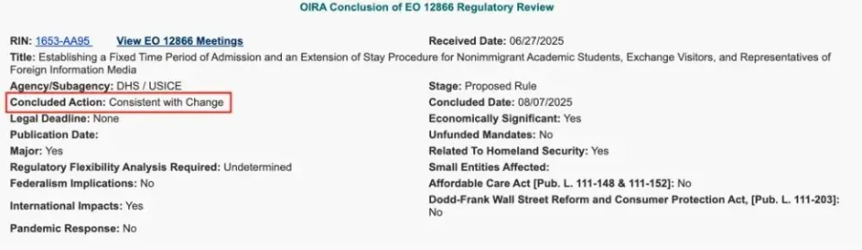 近期,美国国土安全部DHS提交的RIN 1653-AA95已经通过白宫审批。