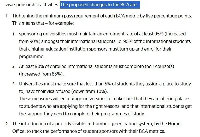 比如,高校必须确保95%的录取国际学生到校注册,而且90%完成课程,如果签证申请被拒比例超过5%,那么学校将失去招收国际学生的资格。