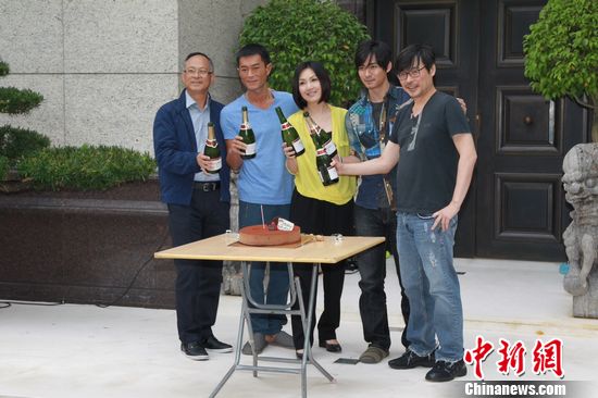 当天,正在香港上水某别墅区紧张拍摄的剧组忙中偷闲,就在拍摄片场为即将在10月20日迎来生日的古天乐切蛋糕开香槟提前庆生,古仔表示今年生日愿望是身体健康,但不会因为不想捱得辛苦而刻意减少工作,他说:“我虽然承认自己是工作狂,但陪伴家人也很重要,所以我有时间休息也尽量多与家人待在一起。(与家人旅行?)我妈妈的生活时间表比我忙很多,我晚上回去也见不到她....。。有时间也想跟她旅行。”而片中另外两位主演杨千嬅和周渝民则在一旁为寿星高唱生日歌送祝福,素有“大笑姑婆”昵称的杨千嬅则为片场增添不少欢乐气氛,走到哪里都能听到爽朗笑声。