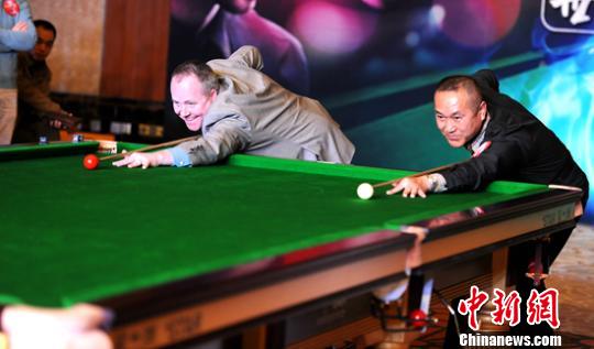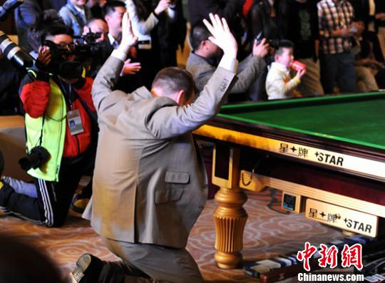 中新网北京3月29日电(王牧青)今天,2015年世界斯诺克中国公开赛正式开幕,比赛之余,著名球星约翰-希金斯、肖恩-墨菲、多米尼克-戴尔、大卫-莫里斯受到赛事合作方“北京信托”邀请,在世界台联主席杰森-弗格森的带领下,参加了一次球迷联谊会。“白巫师”希金斯大秀花式斯诺克绝技,让人拍手叫绝,更让名将墨菲跪地膜拜。