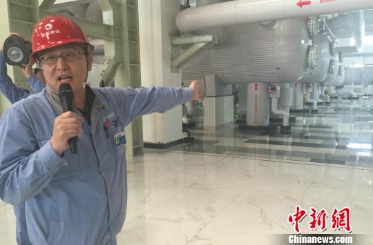 图为在西北燃气热电中心,工作人员向中外记者介绍北京压减燃煤工作。 曾鼐 摄
