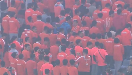 鲁能球迷背对球场。图片来源:视频截图
