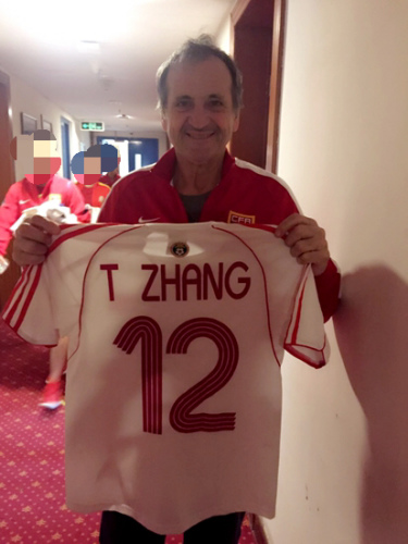 昨晚,比尼第一时间找出了这件随身珍藏的球衣,并通过翻译将照片发给了张彤。