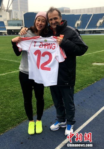 今天,中国女足主帅布鲁诺-比尼继续带领部分球员在北京国家奥体中心内场训练。值得一提的是,时值里约奥运倒计时100天,比尼与巧遇了前女足国脚张彤,法国人拿出了两人9年前曾交换的球衣。张彤感慨说,他被比尼的人格魅力折服,希望中国女足在里约奥运会上带着自信,证明自己。