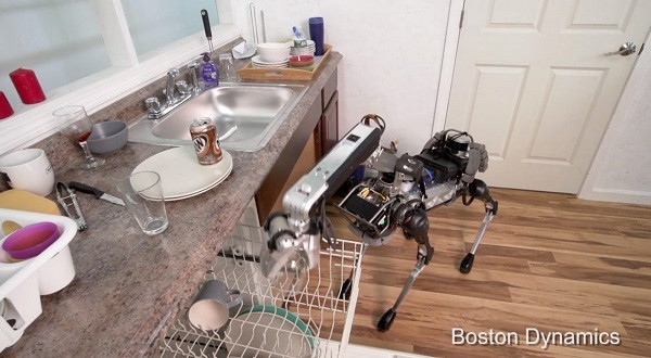 正如该公司在视频中所示,SpotMini更像是一台家庭服务机器人、而不是负重前行的驮马。举例说,在诸多传感器(深度摄像头、陀螺仪、肌肉运动感知传感器等)的协助下,其机械臂可以应付整理洗碗机等场景(如导航和移动某些物件)。