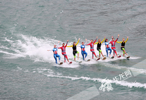 这是集观赏、竞技和惊险刺激于一体、富有现代文明特征的高速水上运动。 记者 刘嵩 摄 据悉,国内近20支省、市级专业摩托艇运动队及来自美国、澳大利亚的多位艺术滑水精英,将在乌江彭水县城水域开展职业组、专业组、挑战组三个组别的摩托艇竞速赛和艺术滑水比赛。