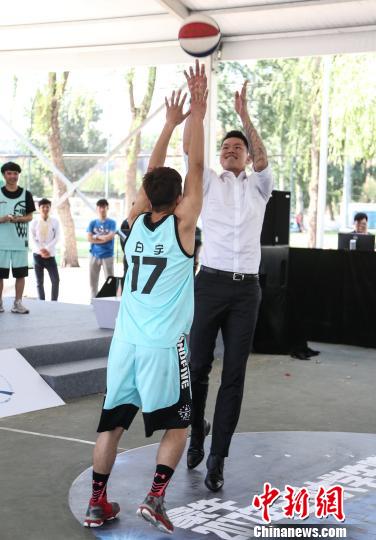 2017年全国大学生院系篮球挑战赛启动仪式10日在北京体育大学举行,前国手、著名篮球运动员朱芳雨与大学生球员的互动成为活动最大亮点。