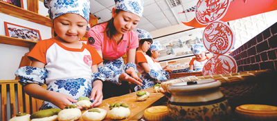 “第一次听老师说过端午要吃‘五毒饼’,不过五毒饼的馅可丰富了,有黑芝麻的,有杏仁蓉的,还有枣泥的呢!我最喜欢吃枣泥的,因为它非常甜。”今年6岁的李浩然小朋友说。 说起端午,身边就仿佛飘起了粽子的香味。然而,除了吃粽子,端午节的习俗还有很多,在北京就有一个独特的习俗:端午节要吃五毒饼。 为了让孩子们了解端午节的由来及意义,延庆区永宁幼儿园举行了端午节传统文化活动,其中一项内容就是自己动手制作“五毒饼”。(见图) 提到“五毒”,总是让人毛骨悚然。但是五毒饼并不是以“五种毒物”为馅的食品,它是人们为端午节特制的一种圆形糕点,上面印着五毒(蛇、蝎子、蜈蚣、壁虎、蛤蟆)图案。 相传每年初夏时节正是毒物滋生活跃的时候,古人将五毒印在食物上,细细咀嚼,颇有点“咬牙切齿”的趣味,也有着以毒攻毒的寓意,祈求消病强身。 早在清朝时期的《燕京岁时记·端阳》中就有记载:“每届端阳以前,府第朱门皆以粽子相馈贻,并副以樱桃、桑椹、荸荠、桃、杏及五毒饼、玫瑰饼等物。”永宁幼儿园园长张艳苹介绍,如果说插艾草、菖蒲,耳鼻涂雄黄酒是为了“避毒虫”,那么吃五毒饼则是直接把“五毒”吃掉,使它们不能毒人,透着北京人的诙谐和风趣。 北京稻香村的老手艺人邢景翠师傅告诉记者,早年间每到端午前,老北京人几乎家家都要制作五毒饼,“家家户户的做法不尽相同,有的家庭做得会精致一点,会用带有五毒雕刻的模具去制作,有的家庭也会做得比较简单,但不论制作方法有多少种,最后在糕饼上印上五毒的图案都是必不可少的。“其实制作五毒饼,除了食用之外,更重要的是让家里的小孩子认识这几种动物,让他们对五毒能敬而远之。”邢景翠解释,以前家家户户都生活在平房之中,这几种生物总是能不经意间闯进人们的生活,往往会惊吓到家里的孩子,大人们就想出这种方法,让孩子们一边吃五毒饼,一边记住“五毒”的样子,不再对它们那么恐惧。 除食“五毒饼”之外,五月端午之前,家中的小孩儿还要穿“五毒衣”“五毒肚兜”“五毒鞋”,戴“老虎帽”,系“老虎褡裢”。在邢景翠看来,这些其实都是和“五毒饼”相配套的,“其实意义都是为了能让家里的小孩儿避开这些害虫,也能让他们趋利避害、健康成长的意思。” 上世纪50年代以后,随着人们的观念不断改变,“五毒饼”开始逐渐淡出人们的视野。不过,近年来,随着人们对传统文化越来越重视,2008年前,稻香村就以新工艺让消失了多年的“五毒饼”重新回到了人们的视野,饼面分别印有蛇、 蝎子、蜈蚣、壁虎、蛤蟆五种形象,对应炭烧黄金薯蓉、黑芝麻、杏仁蓉、绿豆蓉、枣泥五种馅料, 诙谐中透着“健康好运”的美好祝愿。