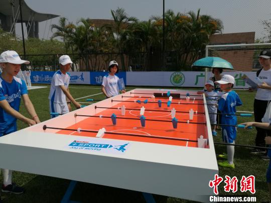 图为小朋友们在玩转巨型桌上足球 郭军 摄